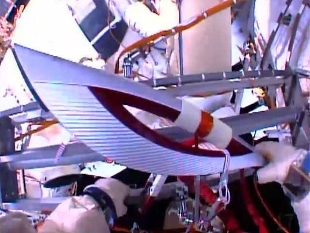 После упражнений с факелом космонавтам предстоит демонтировать площадку "Якорь" с переходного отсека служебного модуля "Звезда" и установить ее на выносное рабочее место, провести фотосъемку экранно-вакуумной теплоизоляции внешней поверхности российского сегмента МКС, а также отключить моноблок космического эксперимента "СВЧ-радиометрия".