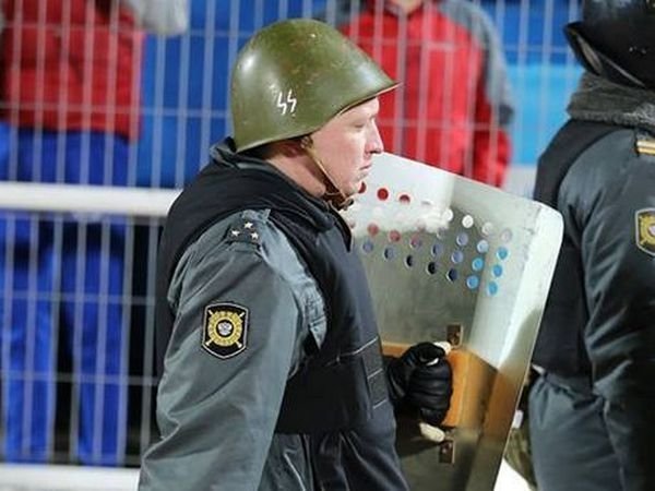 На матче «Спартака» нашли полицейского в каске с нацистской символикой