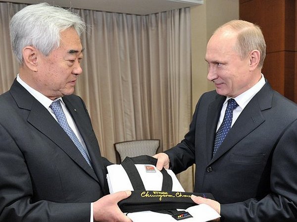 Президенту Владимиру Путину вручили почетный 9-й дан в корейском единоборстве тхэквондо, сообщает «Интерфакс». Пояс и диплом о присвоении степени вручил Путину президент Всемирной федерации тхэквондо Чу Чхон Вон.