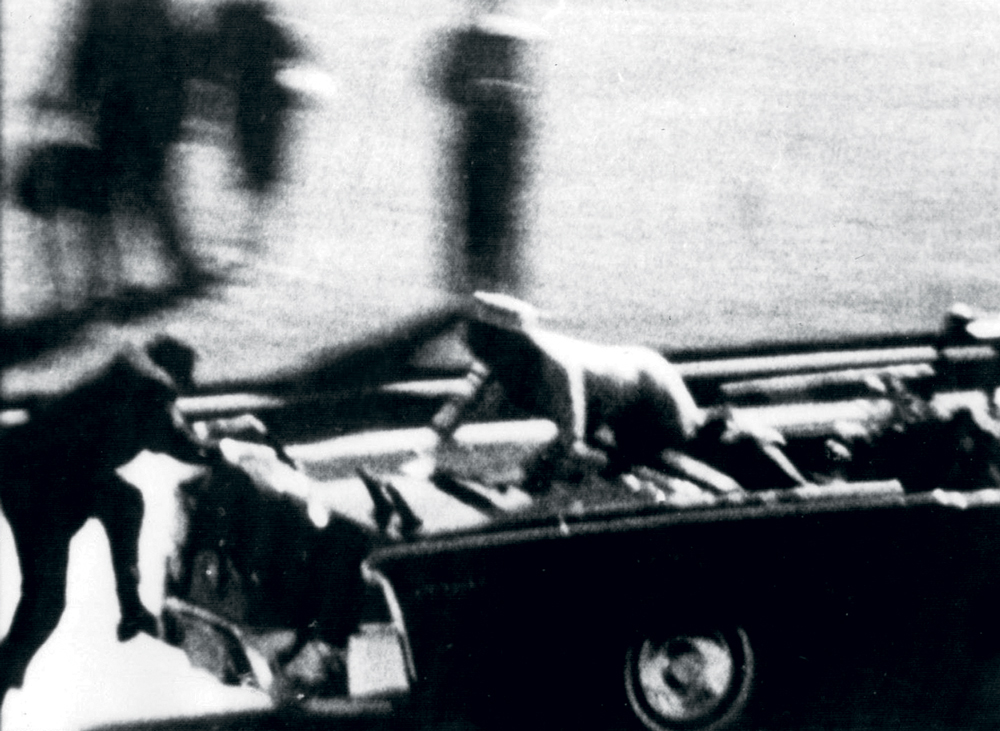 ” 22 ноября Разер выбрал точку для съемки президентского кортежа практически в том же месте, откуда стрелял Ли Харви Освальд: море людей по обе стороны проезжей части, американские флаги, шум… «Я всю жизнь просил у Бога дать мне Большой сюжет, а если уж он давал его мне, то я опять просил: «Дай мне сделать мою работу хорошо», — вспоминает 82-летний Разер. И продолжает: — Иногда кадры с убийством Кеннеди часами крутятся в моей голове, тяжело это вспоминать. До того ноябрьского дня я целых семь лет освещал работу полиции в Техасе, кое-какой опыт у меня уже был. Когда раздались выстрелы, я понял: что-то случилось, но не понял — что именно. Потом я увидел: куда-то делись мотоциклисты, сопровождавшие президентский лимузин. Сомнений не осталось: что-то плохое произошло именно с президентом. Но что? Он ранен? Как ранен? У нас же идет трансляция… Я помчался в Паркленд-госпиталь, куда увезли президента, быстро наладил контакты с регистратурой, врачами, полицией. Я первым из журналистов узнал, что президент умер… Получив информацию из разных источников о смерти президента, я за 20 минут до официального заявления передал ее Уолтеру в Нью-Йорк». Черно-белый экран, все тот же кабинет Кронкайта в редакции CBS, Уолтер вешает телефонную трубку, снимает очки, поднимает голову, поворачивает ее куда-то, видимо, в сторону настенных часов, произносит точное время, затем поворачивается на камеру и сообщает всему миру, что президент Кеннеди убит. Дальше — пауза, Кронкайт не может говорить — голос срывается, он надевает очки, снимает их, опускает голову… Все. Magic Bullet Из всего отснятого 22 ноября в Далласе самое точное и аргументированное свидетельство — любительские кинокадры без звука, сделанные с небольшой высоты Абрахамом Запрудером. Тот отправился было приветствовать президента без камеры — в начале 60-х мало кому пришло бы в голову снимать в пасмурную погоду, но по дороге встретил знакомого, который переубедил его: «Ну когда еще у тебя будет возможность так близко увидеть президента!»