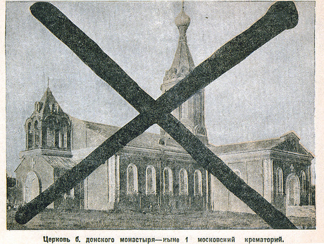 Московский храм-крематорий Донского монастыря сейчас снова стал храмом, помещение освятили и почистили, продув специальным пылесосом. Выдували спекшийся человеческий прах или, как шутили сотрудники крематория, "человечество во взвешенном состоянии". На месте злачном священник отслужил литургию, вместо жара печей и вони сжигаемой человеческой плоти теперь легкий огонек лампадок и сладкий аромат ладана. На этом месте нет мемориальной доски. Ничего нет.