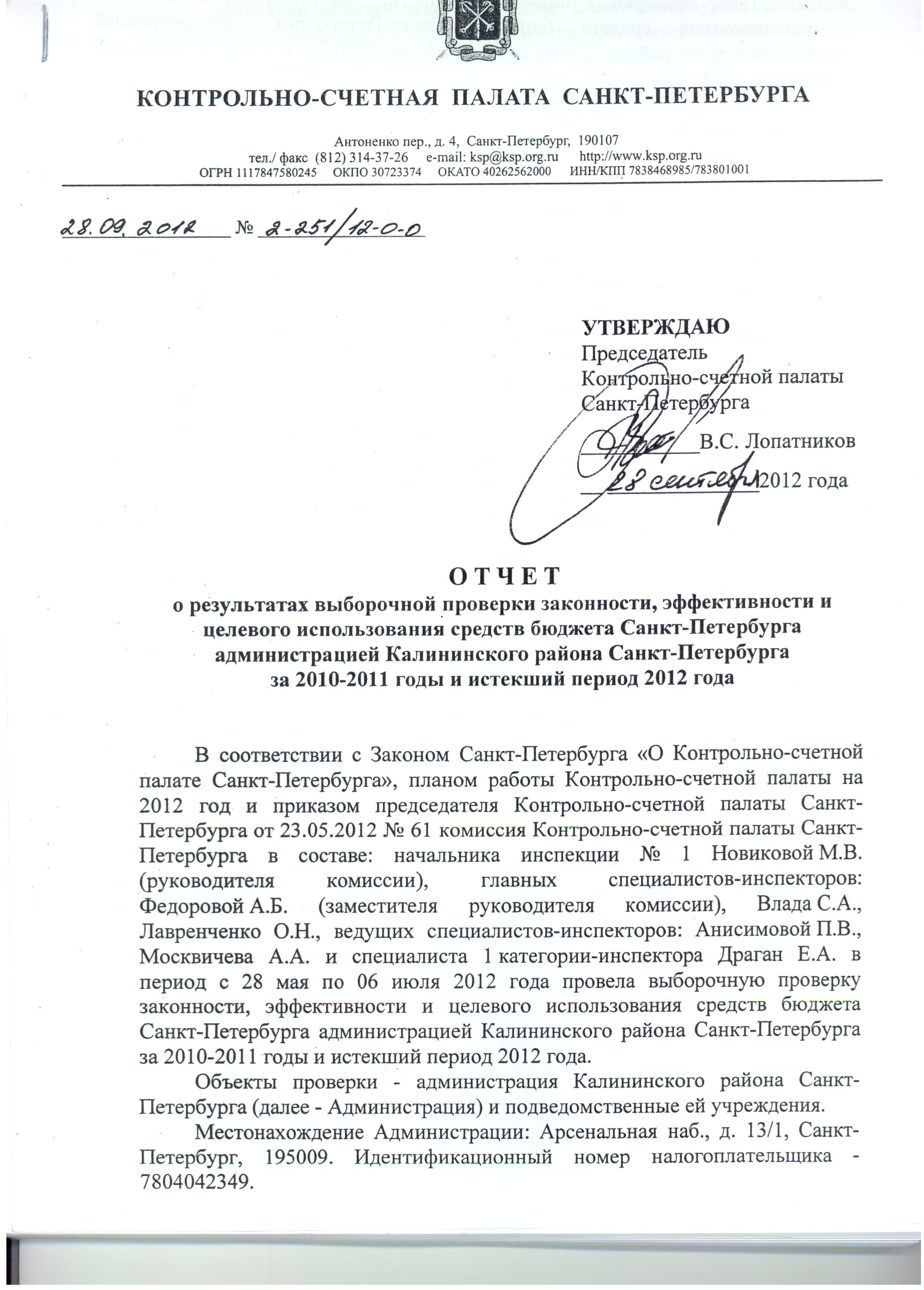 – в ходе проведения проверки в Василеостровском районе Санкт-Петербурга, счетной палатой выявлены нарушения действующего законодательства на сумму не менее 148 851 тыс. рублей;