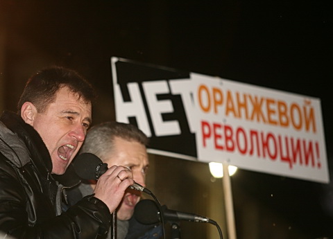 На фото: Россия. Волгоград. 2012-03-05. Губернатор Волгоградской области Сергей Боженов (на первом плане) во время выступления на митинге в поддержку кандидата в президенты Владимира Путина.