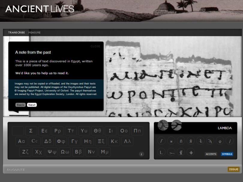 Зарегистрировавшись на сайте Ancient Lives, можно предлагать свои варианты расшифровки, участвовать в обсуждении, оставлять отзывы и кроме того измерять папирусные фрагменты с помощью специальной онлайн-линейки. Программа на сайте помогает определить греческие буквы, которые могли выглядеть по-разному в зависимости от времени написания, почерка писца и назначения папируса.