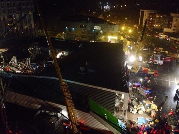 Обрушение торгового центра Maxima в рижском районе Золитуд произошло вечером 21 ноября. Рухнула крыша и одна из стен. Когда на место прибыли спасатели, рухнула еще одна стена. По предварительным данным, причиной обрушения мог стать взрыв отопительного котла. Мэр Риги Нил Ушаков заявил, что торговый центр мог обрушиться из-за нарушений правил безопасности при строительстве крыши здания.
