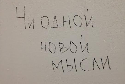 © Ксения Перетрухина / Группа юбилейного года За неделю до открытия на выставке «Попытка альтернативы» Ксении Перетрухиной в Театре на Таганке произошел акт вандализма: в ночь на воскресенье, 24 ноября, под выставочными объектами появились надписи, сделанные несмываемым маркером.