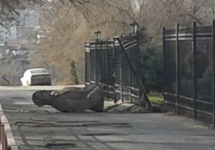 ЧП произошло в субботу. Случайные прохожие на Краснознаменской улице сначала услышали странный хлопок, похожий на негромкий взрыв. Затем они увидели, как на металлический забор, окружавший часть здания, повалился памятник. Скульптура при этом раскололась на части.