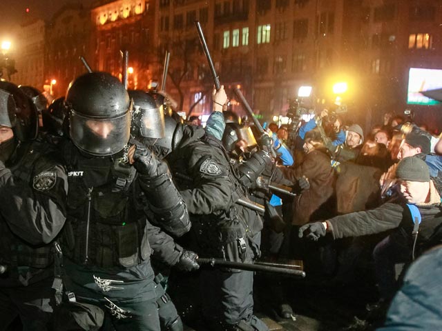 В ночь на понедельник на Европейской площади в центре Киева произошли столкновения между сторонниками евроинтеграции Украины и сотрудниками спецподразделений милиции, милиция применила дубинки и слезоточивый газ, передает РИА "Новости". Протестующие начали строить баррикады по периметру территории, где проходит акция, сообщает корреспондент агентства (отметим, что самих милиционеров также ждал прохладный прием: как следует из многочисленных фото и видео свидетельств, опубликованных в интернете, активисты вступали со спецназом врукопашную, били дубинками и "поливали" газом).