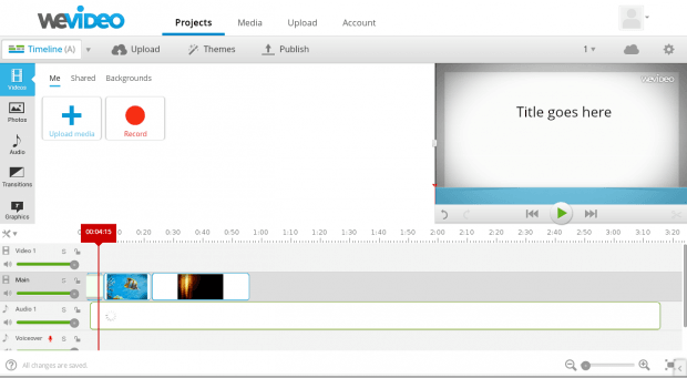 Интерфейс редактора WeVideo покажется хорошо знакомым и привычным всем пользователям, которые прежде сталкивались с редактированием или монтажом видео.