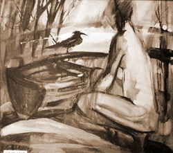 Недавно прошедшая в псковской галерее «Дар» персональная выставка Ирины Кросс называлась «Образ и цвет». Если в чёрно-белом газетном формате при печатании иллюстрации убрать цвет, то что останется? Один образ? Нет. Цвет всё же не исчезнет. Он угадывается.