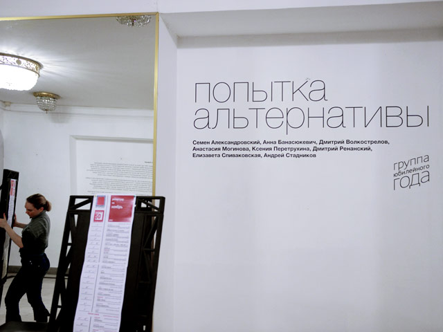 Конфликт в Театре на Таганке разгорелся в минувший понедельник на открытии выставки "Попытка альтернативы", устроенной в фойе и посвященной наступающему 50-летнему юбилею театра.