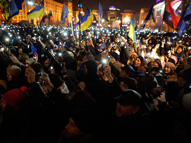 Около 10 тысяч человек вышли митинговать за евроинтеграцию Украины, заполнив майдан Незалежности