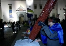 В ночь на среду два лагеря сторонников евроинтеграции в Киеве объединились. Участники акции протеста оппозиции, проходившей на Европейской площади, перешли на Майдан Независимости. Там лагерь возник стихийно, и его участники не используют политическую символику и лозунги. Оппозиционеры после объединения также убрали партийные флаги. В четверг к акции присоединились студенты, прошедшие по Киеву пятитысячным маршем.