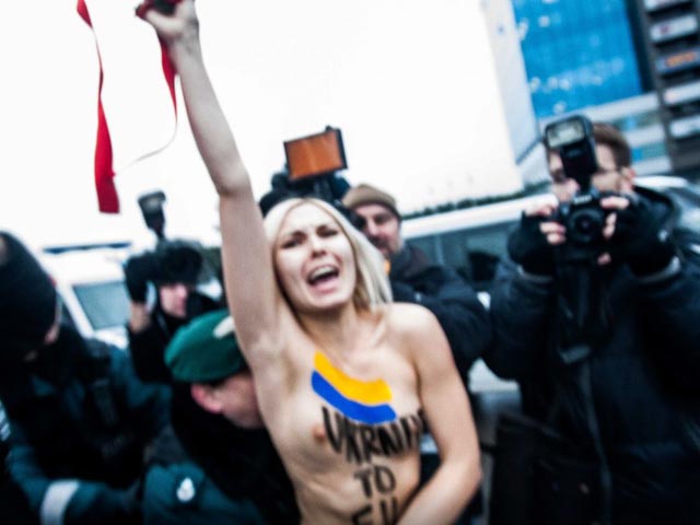 В последние дни активистки FEMEN проявляют повышенную активность. В минувшую среду "секстремистки" провели акцию в поддержку киевского "евромайдана" у посольства Украины в канадском Квебеке. Три девушки с плакатами "Слава Украине", "Putin game over", "Glory Euromaidan" и раскрашенными в национальные цвета Украины грудями требовали подписать соглашение об ассоциации с ЕС. В тот же день они выступили в Берлине, перекрыв своими телами вход в самый большой бордель страны Artemis и даже подрались с проститутками.