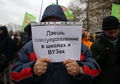 "Норма о повышении зарплаты учителям осталась декларацией", - констатировали участники митинга. Также протест педагогов вызывает принудительное "скрещивание" светского образования с религиозным, что противоречит одной из статей закона, в том числе в новой редакции.