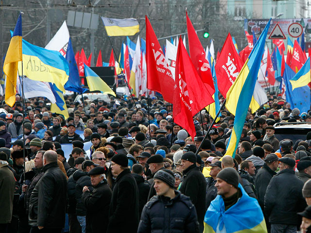 "Вече" в Киеве: толпа вышла на Майдан, "Беркут" охраняет администрацию президента