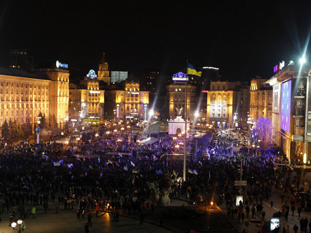 На ночь на Майдане Незалежности (площади Независимости) в центре столицы Украины осталось несколько тысяч человек, там начали устанавливать палатки, передает "Интерфакс". Журналисты насчитали уже 15 палаток. Участники акции готовятся к бессрочным протестам. На площадь подвозят дрова и продукты питания.