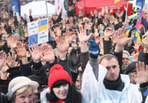 По данным Интерфакса, 1 декабря в городе состоялся народный сход, на котором были собраны около 24 тысяч гривен (почти 100 тысяч рублей), чтобы отправить в Киев более шестидесяти человек.