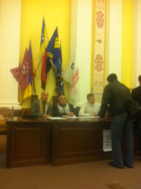 Во внутреннем дворике Кабмина оппозиция вывесила флаг Евросоюза. Власть отреагировала усилением охраны дома правительства и Верховной Рады.