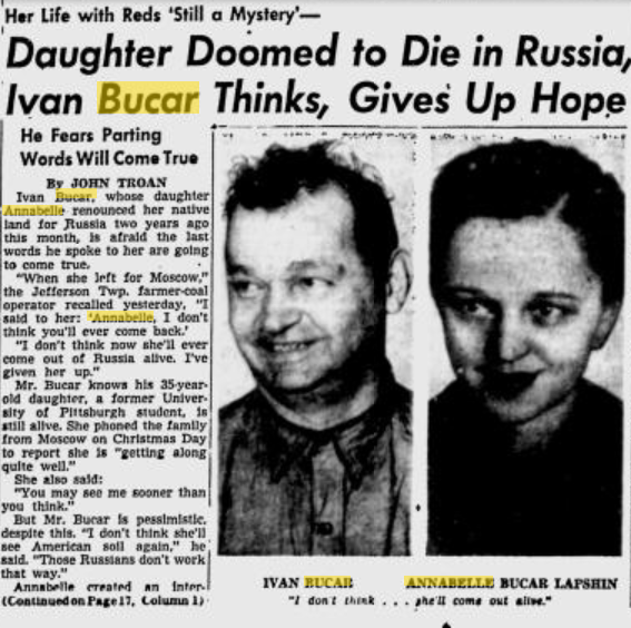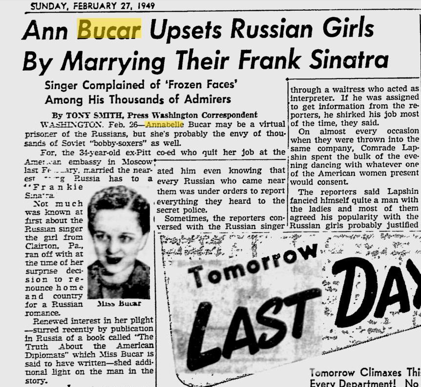 Питсбургская газета Pittsburgh Press писала, что Энн Бюкар расстроила русских девушек – она вышла замуж за «русского Фрэнка Синатру».