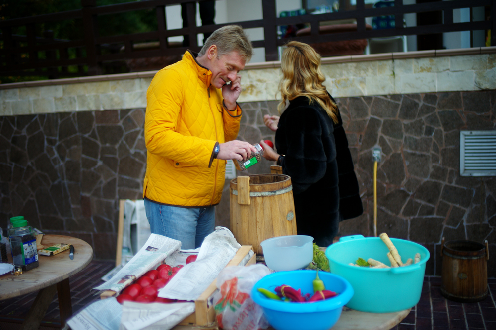 Дмитрий Песков солит помидоры на даче у друзей. Октябрь 2013 г.