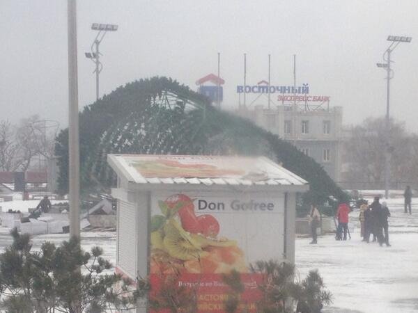 В центре Владивостока рухнула главная новогодняя елка города, высотой около 32 метров, сообщается на сайте городской администрации.