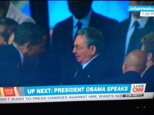 Барак Обама и Рауль Кастро пожали друг-другу руки на похоронах Манделы