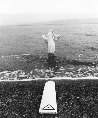 © Михаил Гробман Михаил Гробман. Ангел смерти. 1978. Фотография, 50х67 Живопись и графика на первой их четырех выставок, «Москва, 1960-е» отражает весь спектр идей Гробмана московского периода и его путь от абстрактных и символических до прото-концептуальных работ. Гробман быстро пришел к выработке собственного языка, в котором прослеживается связь с западным модернизмом, а также с художественным наследием русского авангарда, иконописью и теоретическими работами Малевича и футуристов. «Московский период» длился всего десять лет, но это было важное для художника время выработки своей собственной философии и индивидуальных поэтических кодов, время образования среды единомышленников и друзей. В это время у него появилась необычная идея, в конечном счете ставшая одной из причин его отъезда – он предложил новую стратегию развития еврейского искусства. Гробман считал, что оно может встать в авангарде современного художественного процесса, но для этого оно должно возникнуть не на этнографически-бытовой основе, как у Шагала, а на основе еврейской философии, в которой есть глубокие абстрактные принципы. Главной философской темой Гробмана стала тема энергии творения, главным визуальным символом – Левиафан, мистическое чудовище еврейской традиции. В работах Гробмана этого времени («Фарфоровый человек», «Крылатая чаша», «Левиафан») появляется целый мир форм и символов, связанных с его представлениями о принципах творения. В то же время, Гробман одним из первых стал вводить в свои произведения коллажные фрагменты, тексты, а также политические образы.