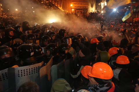 В ночь на среду внутренние войска и спецподразделение «Беркут» при поддержке коммунальных служб попытались выдавить протестующих с Крещатика и Майдана Незалежности и расчистить центр города от баррикад. Акция началась в связи с «многочисленными заявлениями граждан», которые выразили недовольство блокированием улиц в центре города и шумом, который «мешает отдыхать» жителям центра Киева.
