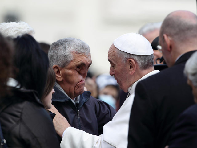 Кроме того, Папа Франциск часто общается с людьми, пожимает им руки, а во время общей аудиенции на площади Святого Петра понтифик обнял изуродованного язвами человека, страдающего 15 лет от нейрофиброматоза.