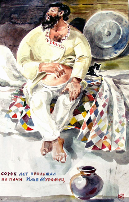 | Юрий Врублевский. Иллюстрация к былине «Об Илье Муромце и Соловье-разбойнике» из цикла «Русский героический эпос». 1996 г. |