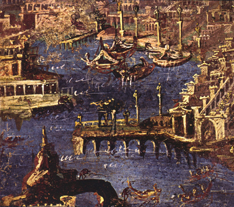 Древнеримская фреска из Стабиев, изображающая прибрежный город — Зато, наверное, пробок не было?