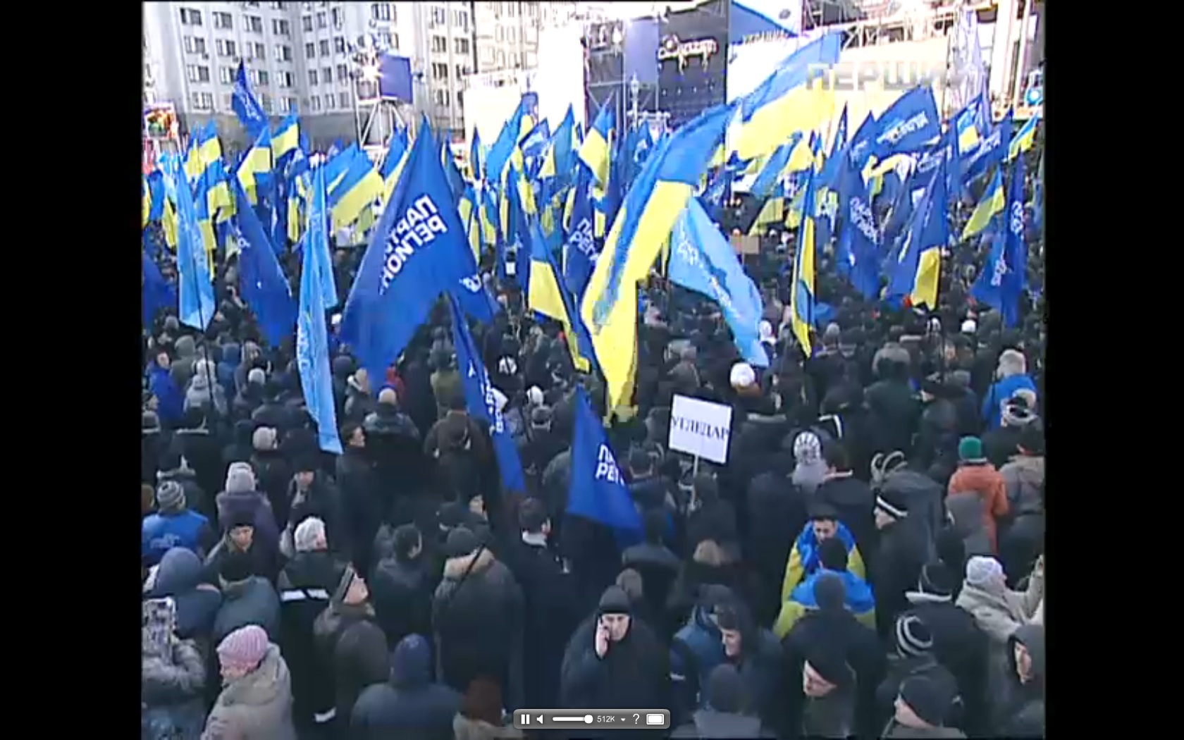 Сообщается, что для участия в акции в поддержку украинского правительства из разных областей Украины в Киев прибыли тысячи людей. По заявлению организаторов, акция продлится два дня и может стать бессрочной.