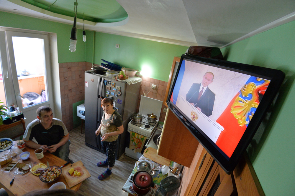 На кухне с президентом. Жители Омска смотрят трансляцию обращения Владимира Путина к Федеральному собранию. 12 декабря 2013 г.