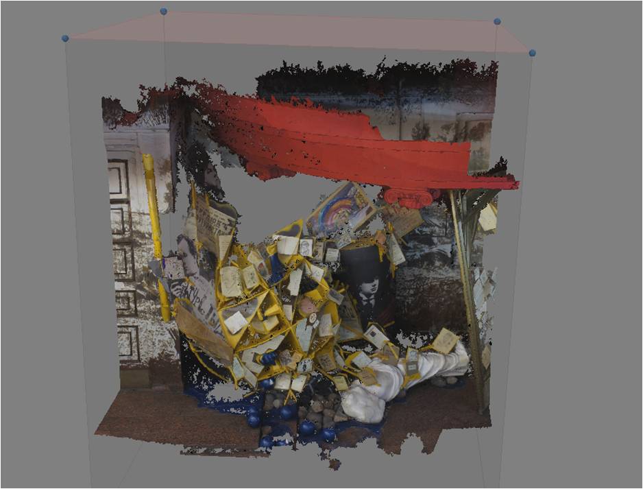 3D-модель экспозиции Музея Маяковского с наложенными текстурами объектов Были созданы текстурированные цифровые модели, в которых точность модели совмещена с фотографической реалистичностью, такие технологические возможности основаны на комплексировании метода лазерного сканирования и фотограмметрии.