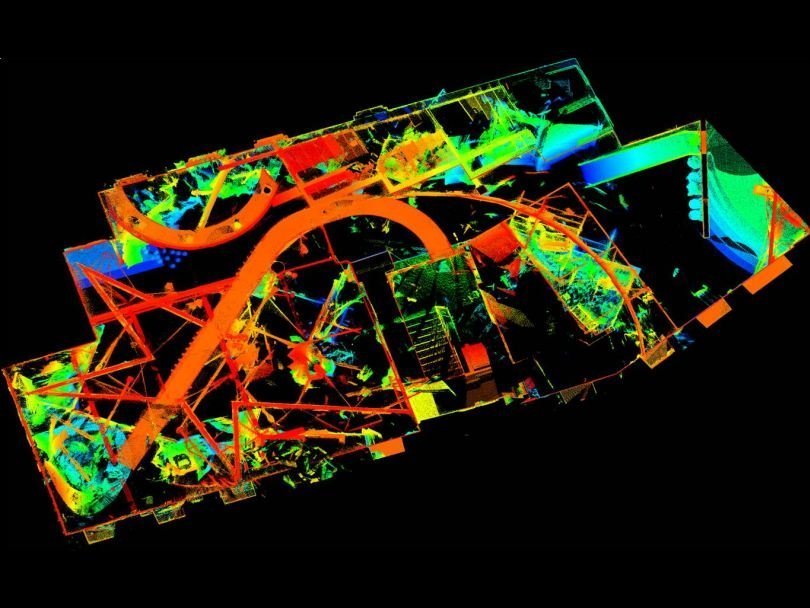 Облака точек с наложенными текстурами находятся в единой системе координат, что позволяет осуществлять моделирование как отдельных конструкций, так и помещения в целом Технология лазерного сканирования, благодаря сверхдетальности получаемых изображений и сшивки композиций, отснятых с множества точек, даёт данные с точностями, позволяющими производить любые инженерные расчёты.