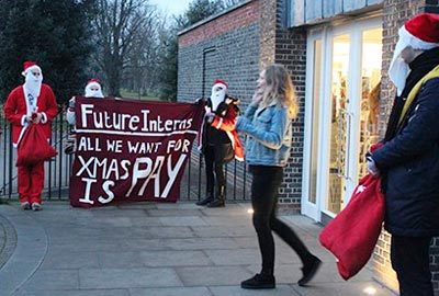 Провела акцию инициативная группа под названием Future Interns — «Будущие стажеры», у входа в галерею они развернули баннер со словами «Всё, что нам нужно к Рождеству — это зарплата», пишет The Guardian.