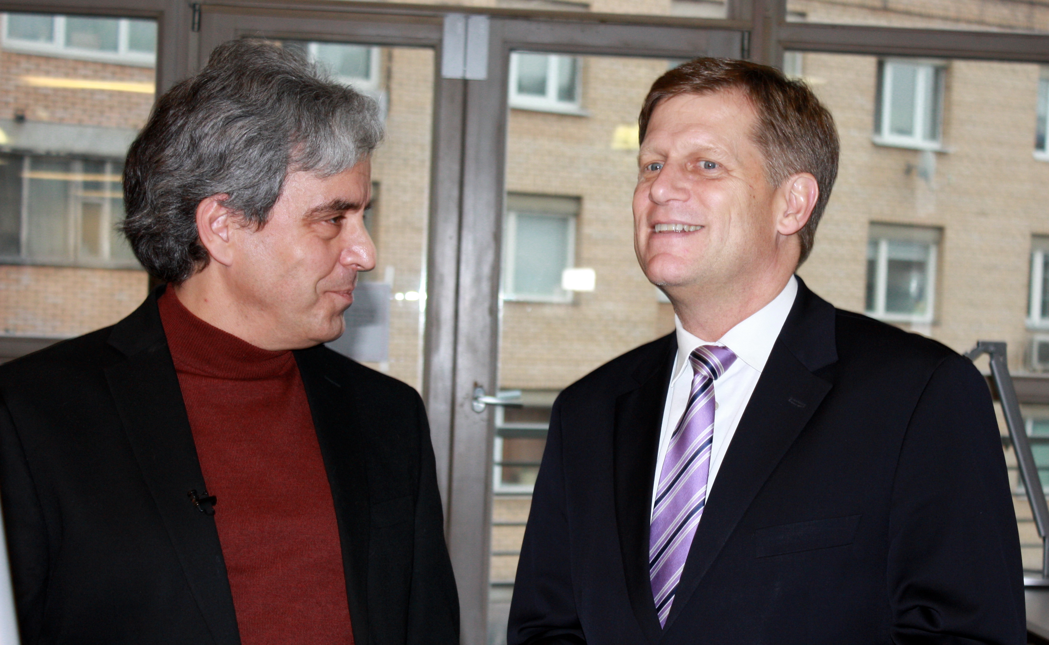 Майкл Макфол: Мы были тогда удивлены, я был советником в предвыборной кампании Обамы, и это была моя работа – готовить нашу реакцию. Это было хорошее время, между прочим, хорошие воспоминания. Что касается ПРО, во-первых, мы уже тысячу раз говорили, что у нас нет желания и нет возможностей делать ПРО против России. Это не вопрос политики, а вопрос физики. И наша задача – говорить с нашими коллегами здесь, в первую очередь в Министерстве обороны, убеждать их. Надо сказать честно – пока не удалось.