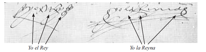 Сличение автографов Христофора Колумба и Педро Мадруги Как следует из графологического заключения и Педро Мадруга, и Христофор Колумб писали куртуазным готическим шрифтом, появившимся в Испании около 1425 года. Образцы почерков обоих людей соответствуют палеографическим особенностям конца XV века. Бросается в глаза сходство расположения текста на листе: слева в начале строки они оба оставляли свободное пространство, тогда как в правой половине листа писали более убористо. Почерк обоих исследуемых был быстрым и стремился к экономии времени и упрощению линий. Мария Торрес Легаррета отмечает, что есть десятилетний перерыв между образцами почерка Педро Мадруги (последний документ датируется 1484 годом) и Колумба (самый ранний из них – 1493 год), из-за чего некоторые элементы графики эволюционировали, сохранив черты сходства, такие как угловатость овалов и удлинение вертикальных осей. Наиболее показательным примером служит острота угла при написании буквы «а», особенно в начале слова. Другим следствием угловатости овалов является свойственная обоим авторам зубцеобразная буква «m». Третий пример сходства угловатости овалов состоит в написании «o» похожем на «u». Также отмечается особенность Колумба, который всегда стремился писать на лицевой стороне листа каллиграфическим почерком, словно прикладывая усилия по изменению почерка, тогда как на оборотной – писал более импульсивно и естественно. Именно эти, финальные строки имеют большее число черт сходства с графикой Педро Мадруги. Примером могут служить письма адмирала монаху Гаспару де Горрисио.