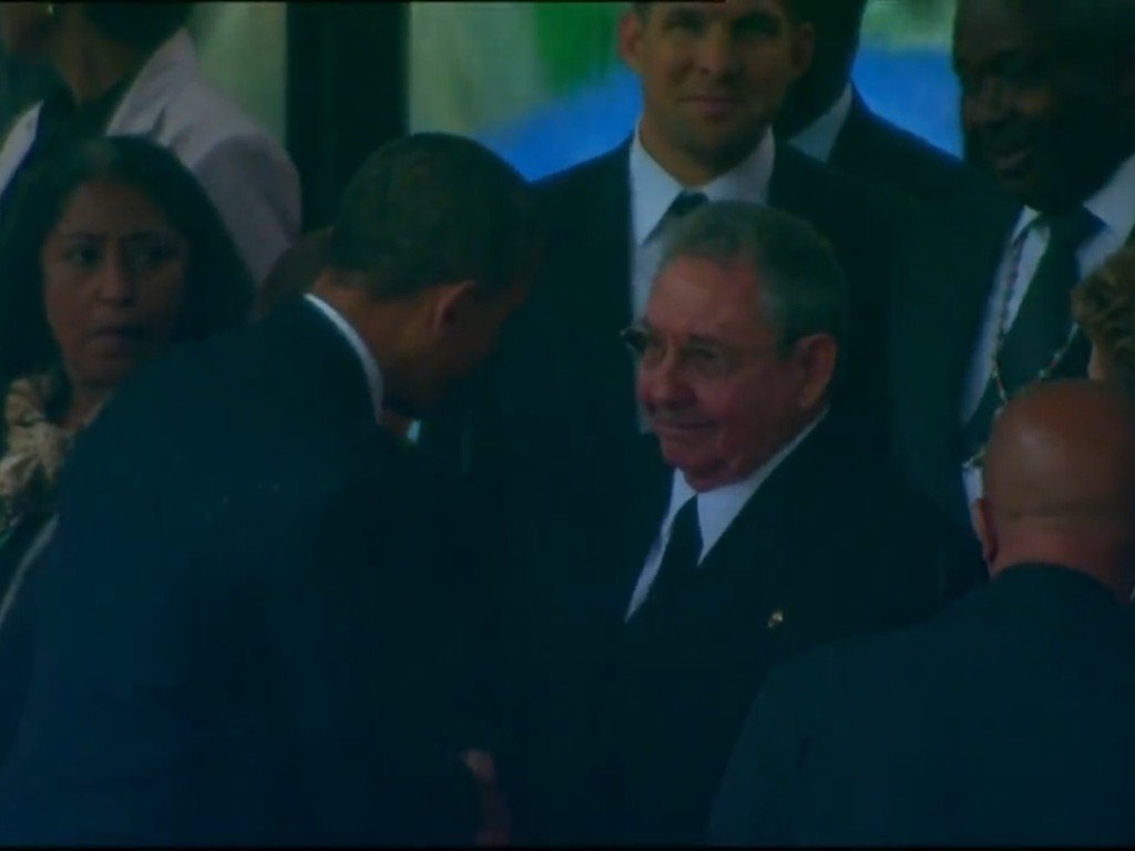 На церемонии прощания с экс-президентом ЮАР Нельсоном Манделой 10 декабря в Йоханесбурге Обама, который сидел в том же VIP-секторе, что и кубинский лидер, протянул руку Кастро перед тем, как выйти на подиум, чтобы произнести свою речь в память о Манделе. Кастро в ответ улыбнулся Обаме и пожал его руку. Это был первый контакт подобного рода между лидерами двух стран за 13 лет. Фотография Обамы и Кастро была сразу же опубликована и вызвала вопросы общественности по поводу будущего отношений между двумя странами.