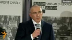 Возвращаясь к благодарности - когда ведущая пресс-конференции, директор музея "Чекпойнт Чарли" Александра Хильдебрандт сказала, что следует поблагодарить и Владимира Путина, в зале раздались недовольные возгласы, а Михаил Ходорковский в ответ на него улыбнулся.