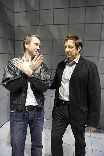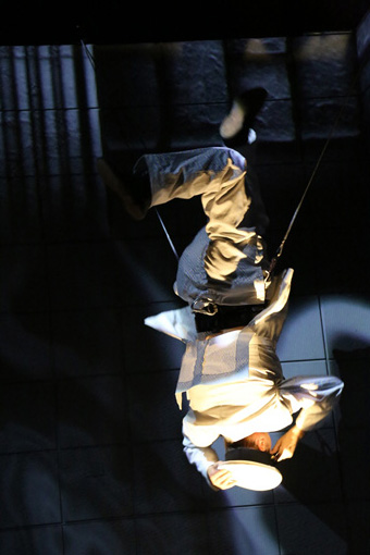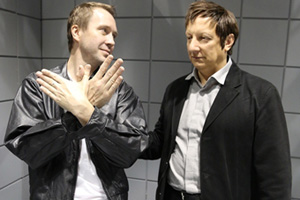 — Структура всегда вторична по отношению к материалу, сочиняемому коллективно. Со стороны может показаться, что я эдакий демиург-творец, созидающий миры, но на самом деле, поверьте, моя заслуга в создании спектакля едва ли более велика, чем вклад остальных членов Ex Machina. Другое дело, что именно я частенько выступаю человеком, задающим определенную точку отсчета в нашем пути, — я уже, кажется, говорил в каком-то интервью, что процесс создания спектакля для меня сродни путешествию Христофора Колумба в Индию, закончившемуся в итоге, как известно, открытием Америки. Поясню на примере «Липсинка»: на первой встрече с командой я, как сейчас помню, рассказал о том, как однажды летел из Южной Америки в Монреаль. По соседству со мной в бизнес-классе располагалась оперная певица, учившая по нотам новую партию, а на самом последнем ряду эконом-класса на руках у бедной южноамериканской беженки отчаянно плакал младенец. Сочетание двух этих столь непохожих человеческих голосов — утонченного оперного голоса и голоса самого, если можно так выразиться, простецкого — определило смысловую координату будущего спектакля. Потом мы, конечно, уточняли детали, но направление движения было задано.