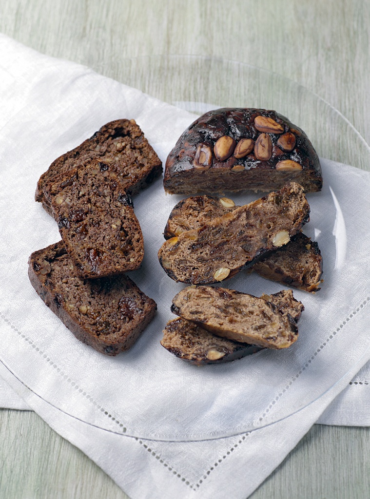 По 1/2 стакана льняной и миндальной муки, 1,25 стакана муки из кешью, по 1 стакану нарезанного чернослива, нарезанных грецких орехов и воды, 4 ст. л. яблочного пюре без сахара, 2 ч. л. корицы, по 1,5 ч. л. разрыхлителя и ксантана, по 0,5 ч. л. соли и соды.