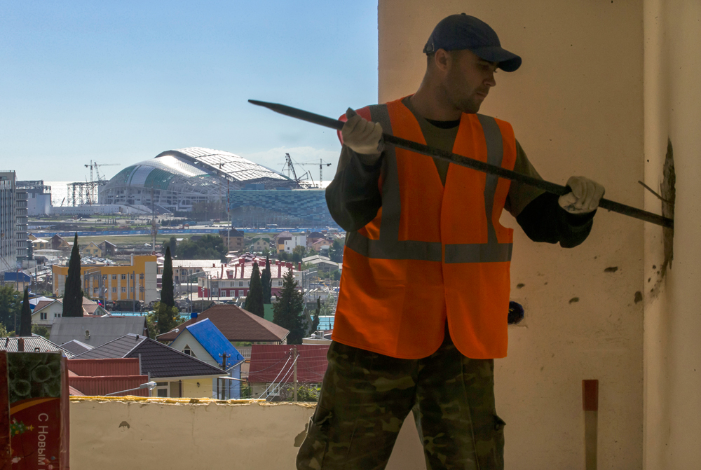 После того как иностранцев в Сочи стало меньше, на работу стали набирать граждан России, в основном из Чечни и Дагестана, хотя раньше, по словам Симонова, спецслужбы запретили застройщикам брать на работу кавказцев. Платить им при этом нужно в два раза больше: если рабочие из Центральной Азии были согласны трудиться за 20–25 тыс. рублей в месяц, то россияне стоят как минимум вдвое дороже. Впрочем, выходцам с Кавказа здесь все равно не сладко, они не могут показаться в городе без того, чтобы у них не проверили документы или даже задержали — просто так, для профилактики. «Несколько чеченцев задержали прямо на выходе из моего офиса, — рассказывает Семен Симонов. — Я пошел к отделению полиции, мне навстречу полицейский с пачкой паспортов в руках. Я спрашиваю его, в чем дело, он отвечает, что у него указание — задерживать всех лиц узбекской и кавказской национальности». Приезжих обычно держат в отделении пару дней, мотивируя это тем, что они похожи на находящихся в розыске, а потом отпускают.