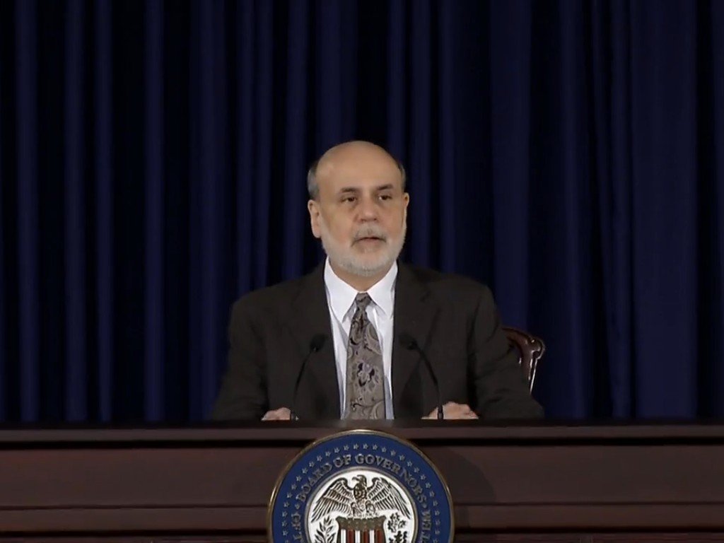 Глава ФРС Бен Бернанке на пресс-конференции Федеральная резервная служба США приняла решение о постепенном прекращении третьего раунда программы количественного смягчения, который начался в сентябре 2012 года. Этот раунд состоял в том, что ФРС ежемесячно покупало облигации Правительства США и ипотечные облигации, реинвестировало доходы по своему портфелю ценных бумаг в эти же облигации и удерживало базовую процентную ставку на уровне 0.25% годовых.
