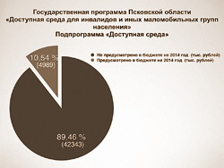 - Это не логотип партии «Яблоко», - предотвратил Шлосберг возможные вопросы со стороны того же Севастьянова, - это соотношение в подпрограмме «Доступная среда» предусмотренных и непредусмотренных средств областного бюджета.