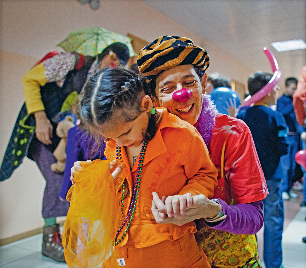 Больше 20 лет Пэтч Адамс, ставший прототипом героя Робина Уильямса в фильме «Целитель Адамс», распространяет в больницах, детских домах и домах престарелых по всему миру универсальное лекарство — смех. Решив однажды, что никто не должен тратить ни единого дня на грусть, доктор Адамс основал свое движение и с тех пор занимается благотворительностью, надев клоунский костюм. Этой осенью группа волонтеров из разных стран снова приехала в Россию