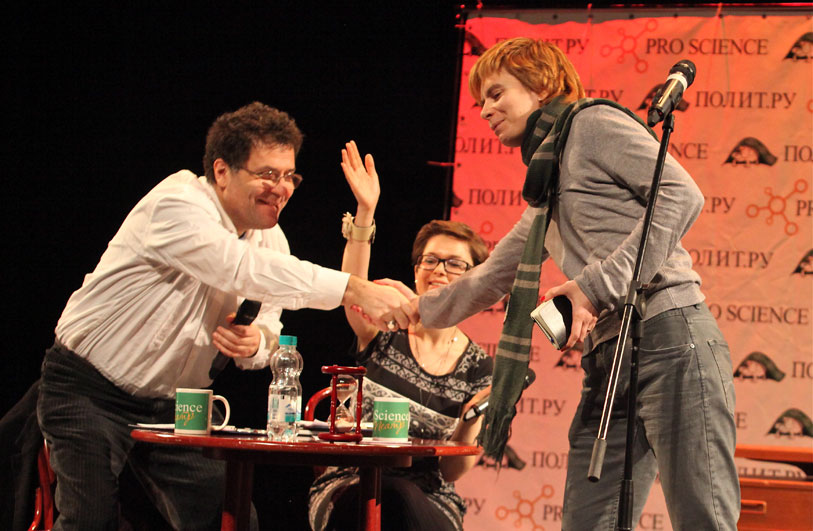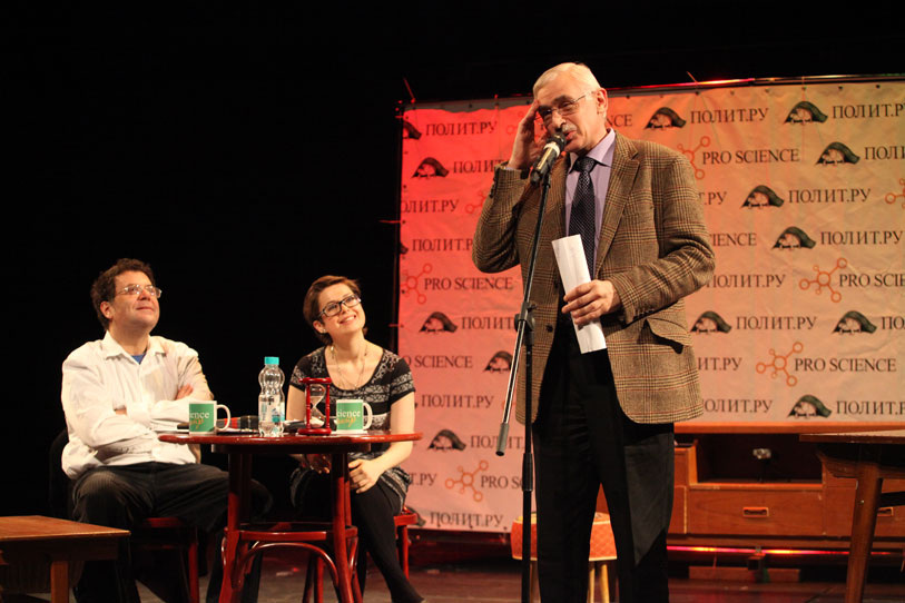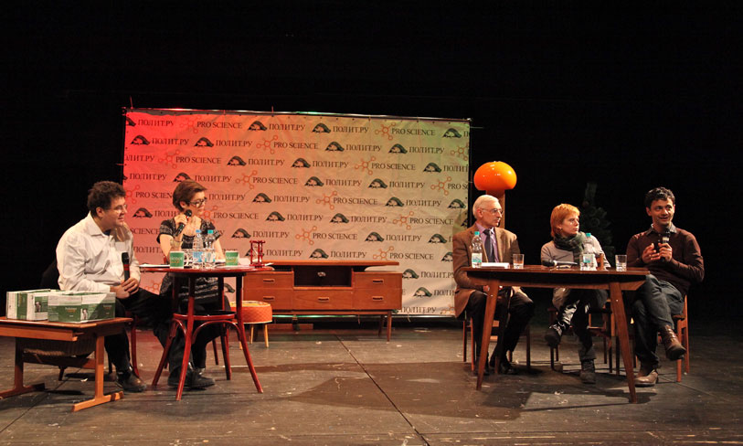 24 декабря на сцене центра имени Мейерхольда в рамках «Нового года в ProScience Театре» перед зрителями выступили известные специалисты кристаллограф Артем Оганов, юрист Мария Шклярук , историк Игорь Данилевский. Гости подводили итоги 2013, рассказывали о главных достижения, открытиях и разочарованиях старого года, делали прогнозы на новый, 2014 научный год и делились главными ожиданиями по поводу наступающего года.