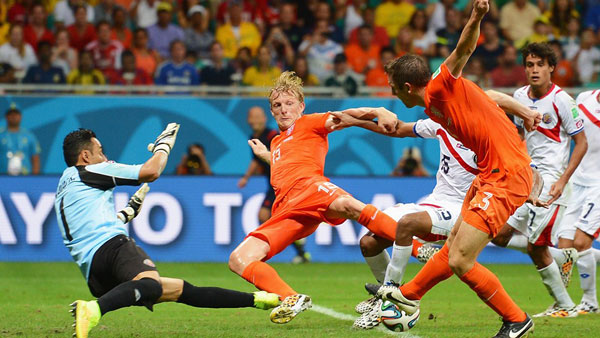 Сборная Нидерландов обыграла команду Коста-Рики в последнем четвертьфинальном матче чемпионата мира по футболу 2014 года в Бразилии. Основное и дополнительное время матча завершилось вничью 0:0, в серии пенальти удачливее оказались голландцы - 4:3.
