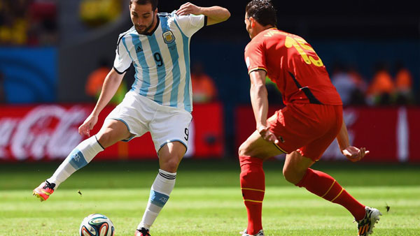ГОООЛ!!! Гонсало Игуаин получил в штрафной площади отскочивший к нему мяч и пробил в угол - 1:0 в пользу сборной Аргентины на 8-й минуте!